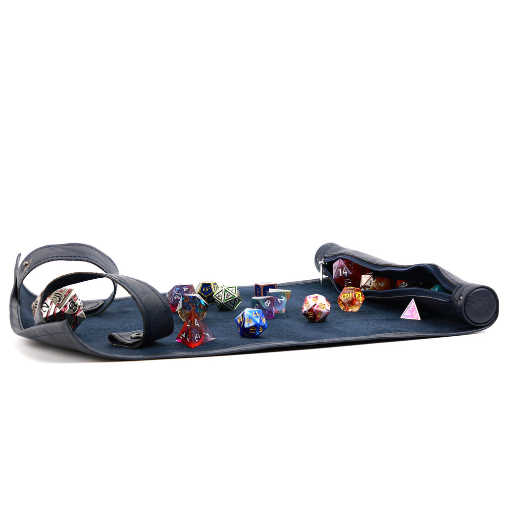 Unfurl your scroll to reveal the treasure within — a zipped compartment ready to store your most prized dice sets, safely tucked away until it’s time to roll for glory. When battle begins, the scroll doubles as a smooth, soft dice-rolling mat — keeping your rolls crisp, your table safe, and your game looking legendary.
